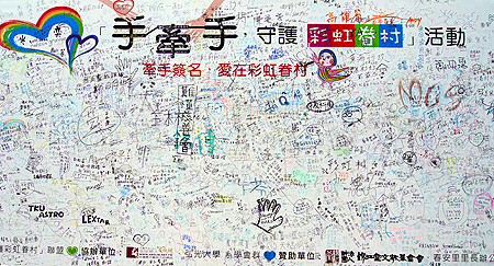 辦的一場「919守護彩虹眷村到永久」千人牽手活動的簽名板。
